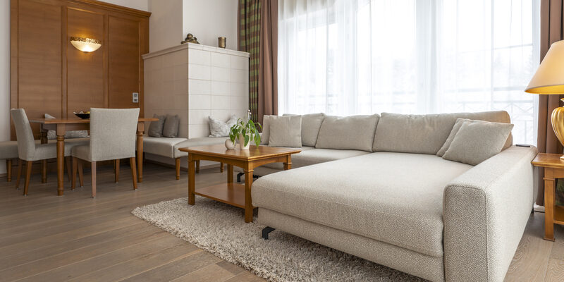 - großzügiges Wohnzimmer mit Kachelofen